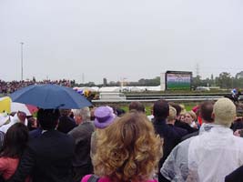 Slipon tries to make an impression on the hat appreciators at the Melbourne Cup